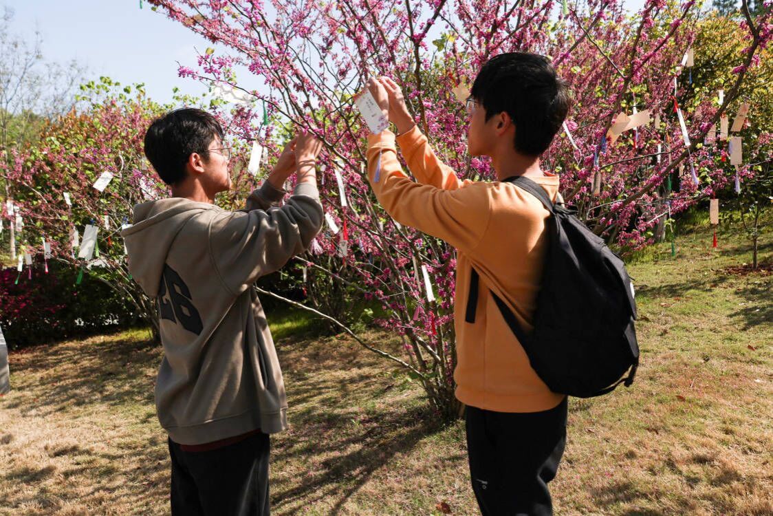 步行前往革命烈士纪念馆的途中,化学工程与工艺专业2022(1)班的黄顺执笔在卡片上写下“为中华之崛起而读书”并挂上路旁的祈愿树。他表示,这是周恩来总理少时的梦想,也应该是全体中华儿女为民族复兴而努力的梦想。“作为入党积极分子,我将努力学习科学文化知识,增进对党史党章的了解,为成为一名为人民、社会和国家奉献的党员积蓄力量。”