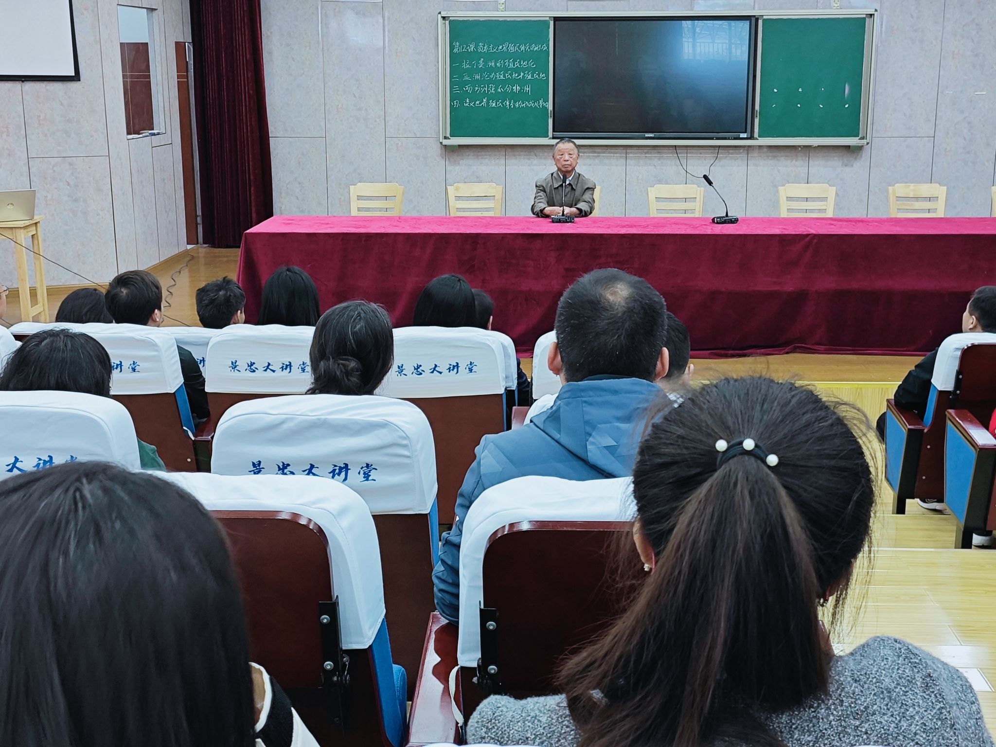 全体学员参观了潜山野寨中学国防教育主题展,重温了习近平总书记给野寨中学新考取军校20名同学的回信精神,深入了解了野寨中学长期以来对国防教育孜孜以求的探索,充分感受野寨中学无处不在的国防教育氛围。瞻仰抗日阵亡将士公墓、忠烈祠、纪念碑、浩然亭、浮雕墙等建筑,聆听抗战时期英烈事迹。在野寨中学景忠讲堂中,围绕野寨中学的历史和国防教育开展情况,由野寨中学教育发展基金会终身荣誉理事长王胜生给我们上了一堂生动形象的爱国主义教育课。