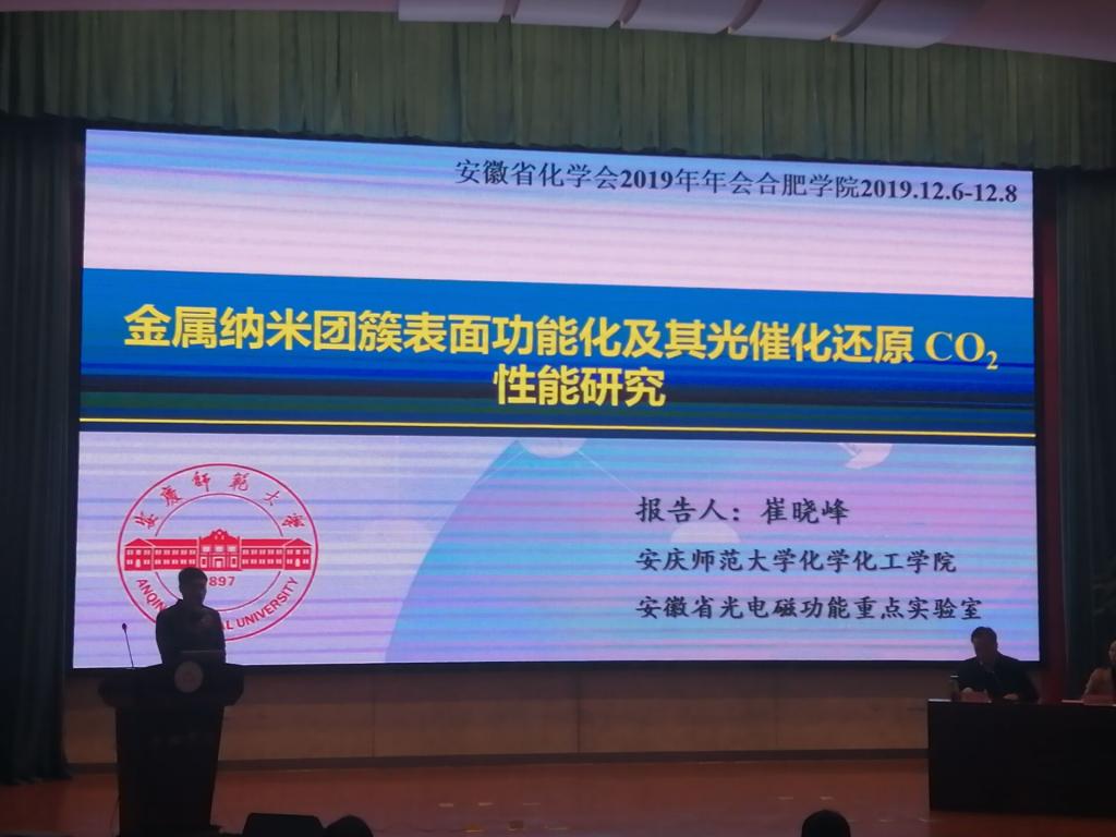 12月6日至12月8日,安徽省化学学会2019年学术年会暨第十九届化学教学改革研讨会在合肥公司召开,bevictor1946韦德官网崔晓峰副教授受邀参加了此次会议,并作题为《金属纳米团簇表面功能化及其光催化还原 CO2 性能研究》学术报告。