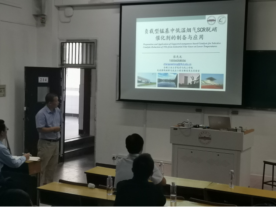 张先龙副教授作了以“烟气多种污染物超低排放的炭基催化剂及技术”为主题的报告。报告中张教授主要介绍了燃煤烟气脱硫脱硝及多种污染物一体化脱除和环境催化材料及催化新技术以及课题组最新研究成果。张教授报告内容丰富,拓宽了师生的视野和激发了员工的学习兴趣。