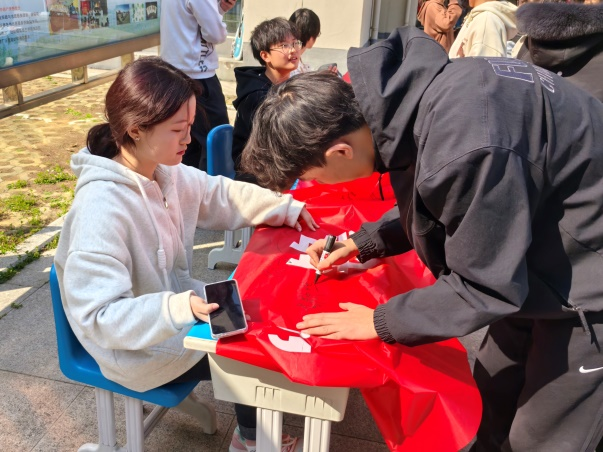 在认真聆听科普宣讲后,同学们纷纷在“三月春‘锋’暖,热血映初心”横幅上郑重签名,坚定投身公益的决心。化学工程与工艺专业2024级李亚辉表示:“作为一名老员工,能够通过献血为社会贡献一份力量,我感到无比自豪。这不仅是一次公益活动,更是一次对自我价值的深刻认识。”活动负责人、材料化学专业2022级(2)班陈浩东表示:“公司将以此次活动为契机,引导更多青年投身公益实践,为社会注入更多温暖与正能量。”