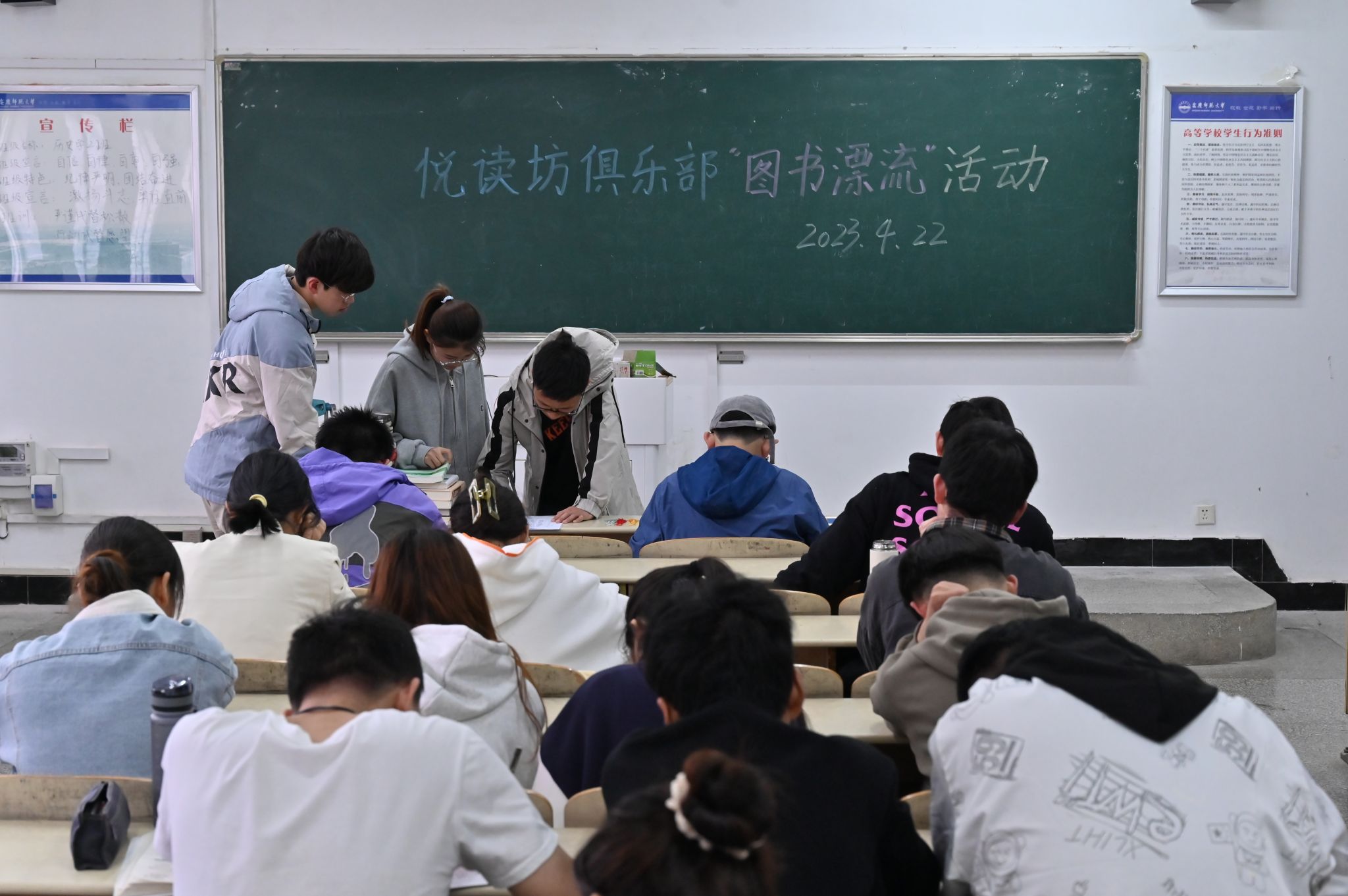 近日,bevictor1946韦德官网悦读坊俱乐部在文渊楼204教室开展世界读书日——图书“漂流”活动。30余名成员参与活动,共同开启一起“悦”读的美好时光。