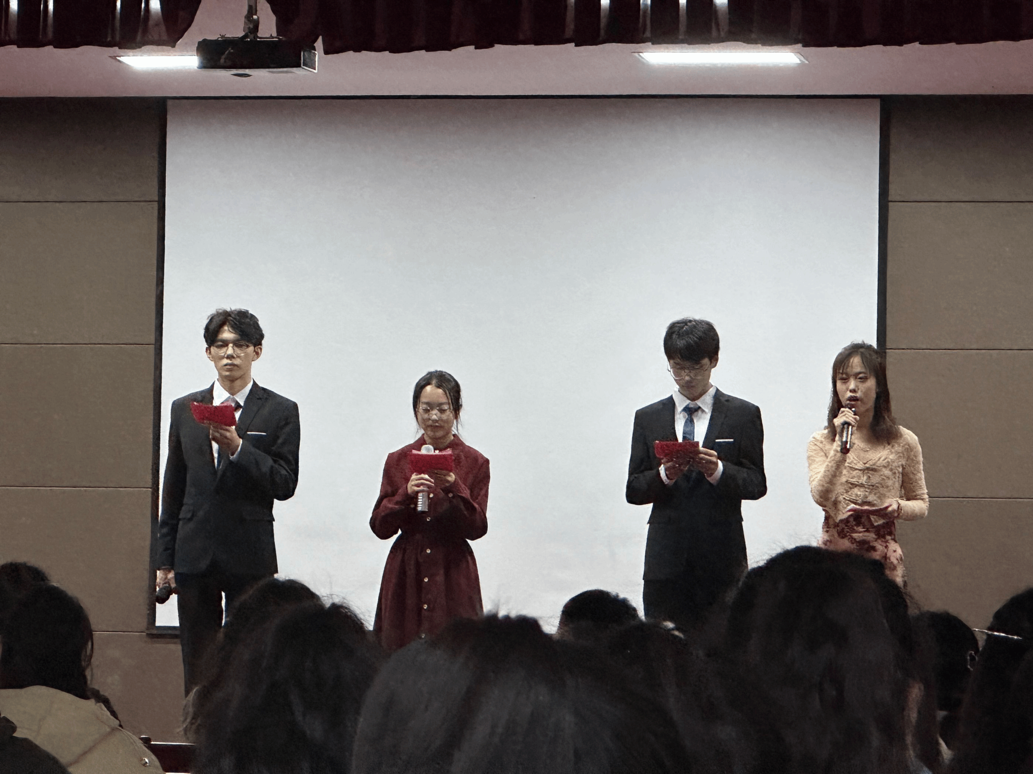 用旋律吐露心声,用节奏宣誓未来,诗朗诵《相信未来》用铿锵有力的誓言鼓舞同学们坚定理想信念,砥砺前行;“灯火漫卷的万里河山,初心换回了百年承诺”,一曲《灯火里的中国》描绘出中国梦的伟大宏图;反诈小品《傻子,骗子,局子》以幽默风趣的语言、夸张诙谐的动作将诈骗分子的惯用手段、作案方式和防范技巧等反诈知识融入表演当中.互动环节中,老员工科技化学协会带来大象牙膏、掌中火焰、茶水变墨水等趣味科普小实验,给同学们带来一次又一次的视觉冲击,将现场的气氛推向高潮……同学们尽情展现才艺,秀出风采,为观众呈现了一场精彩的艺术团课。