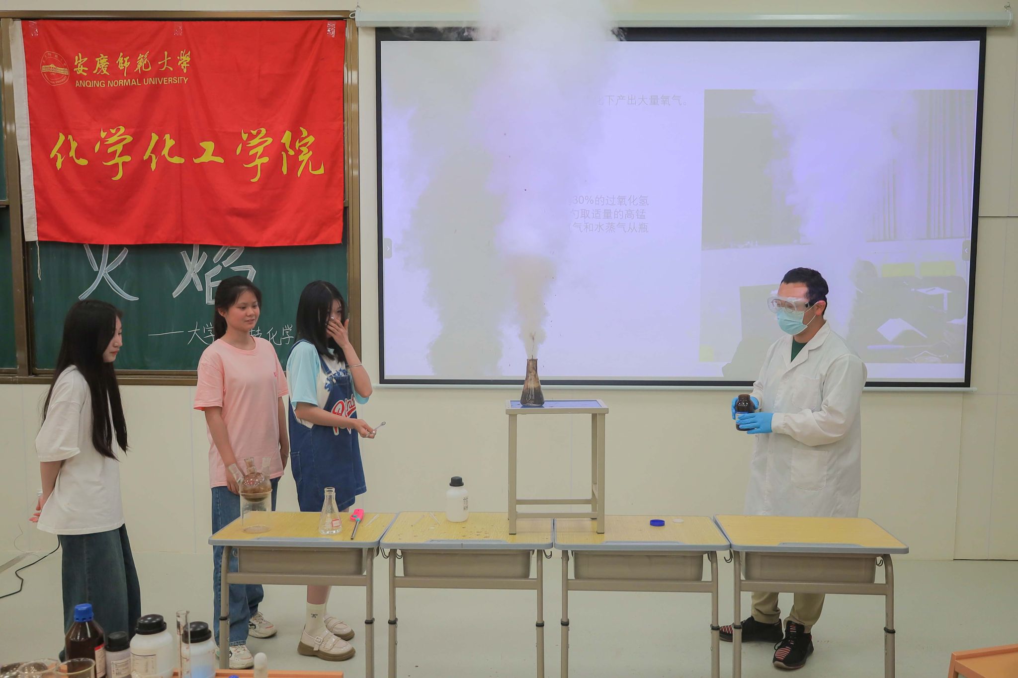 双手浸湿洗洁精水、捧起丁烷气的气泡、用点火枪点燃,学前教育专业2023(2)班的魏笑扬起手中丁烷气体的泡泡,一瞬间,火焰“蹭”一下在掌心窜出。“之前对化学实验接触得比较少,通过这次亲身体验,我对化学之美有了更深的理解。”魏笑表示,未来自己将会继续关注并积极参与化学相关实验。