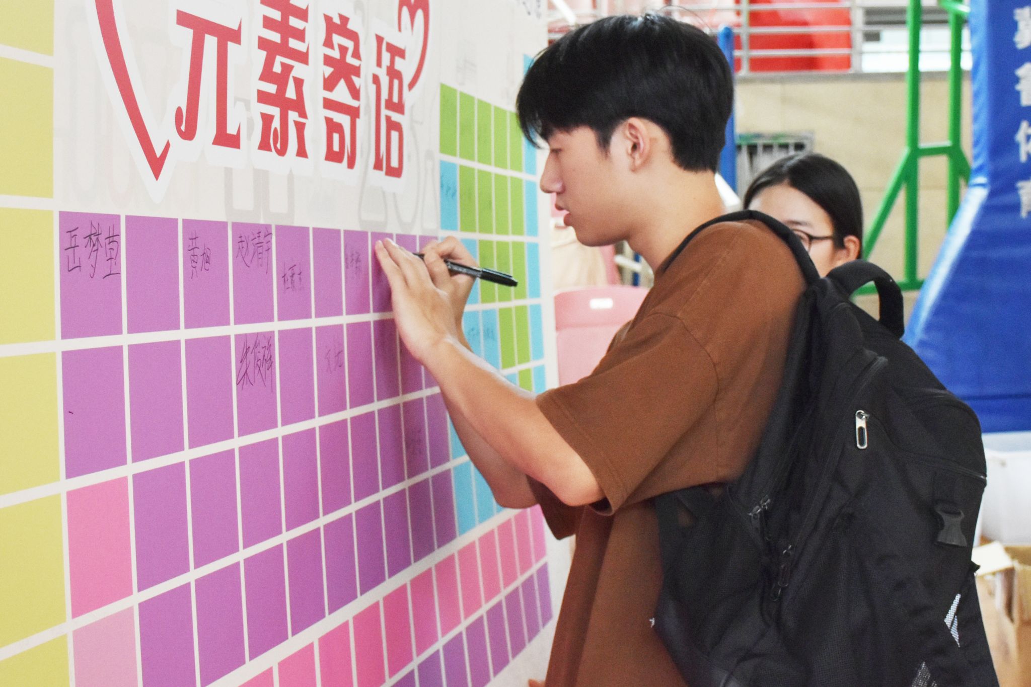 “哇,这是签名板吗?好有创意!”步入体育馆时,化学专业2024级新生杨欣怡被一面元素周期表的签名板深深吸引。报到现场,公司特别设置了“元素寄语板”,邀请每位新生在自己喜欢的元素空格内留下姓名和心愿。这一创意不仅让新生们感到新奇有趣,也让他们在开始老员工活之际,就与化学元素建立了独特的联系。此外,公司还发挥专业优势,将员工自制驱蚁液作为迎新礼物赠予新生,充分彰显了学科专业特色。化学专业2022级5班杨芳雨表示:“将化学元素融入迎新活动,让冰冷的化学符号瞬间充满了温度,也让新生们对学科专业有了更深的了解和期待。”