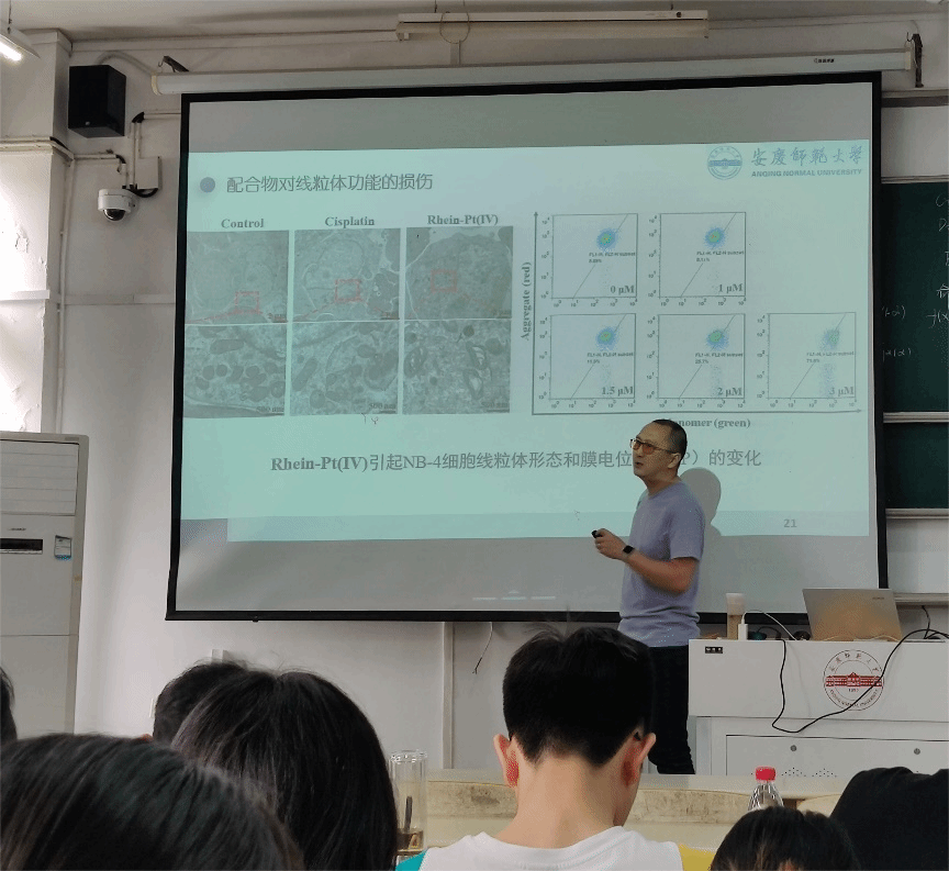 4月28日,bevictor1946韦德官网王彦教授在教学楼A205教室作“天然产物大黄酸修饰的金属抗癌药物的抗肿瘤活性研究”学术报告,化学专业部分员工参加了报告会。