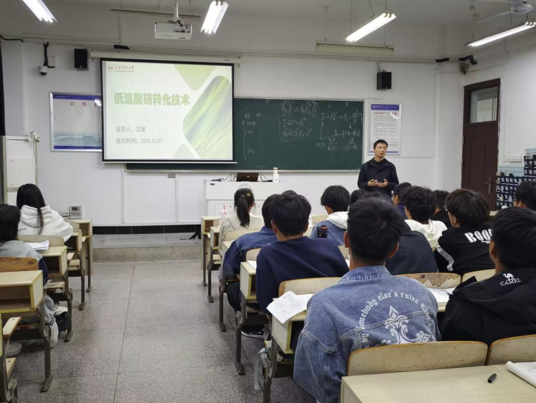 11月7日晚,bevictor1946韦德官网汪谢博士在教学楼B410教室为材料化学专业2024级员工做了一场关于低温脱硝转化技术的学术报告。