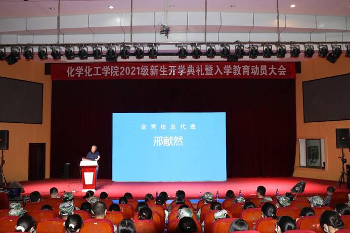 “大学和中学是不一样的,同学们要确立适合自己的目标,养成良好的学习生活习惯,注重能力的提升。大学的时光总是美好而快乐的,希望化学化工院的学子能够把自己的爱好变成自己的优势,做一个对社会有用的人。”北京科技大学化学研究所教授、所长,教育部创新团队负责人,国家重点研发项目首席科学家,国家自然科学基金委重大项目负责人,化学专业1988届毕业生邢献然教授作为优秀员工代表为新生寄语,分享了自己在校学习生活的经历和体会,为新生学子们讲述了生动一课,赢得阵阵掌声。
