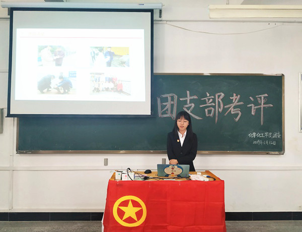会上,各班级汇报人分别从组织建设、宣传工作、思想引领、第二课堂、支部特色等5个方面介绍班级团支部工作的开展情况。各汇报同学精神饱满、自信十足,PPT制作精美、内容丰富但却各有千秋。其中2017级化学1班团支部汇报时声音洪亮,通过大量的图片详实地介绍了班级丰富多彩的团日活动;2018级化学1班团支部在思想建设、实践服务方面较为突出,定期带领班级团员学习时事政治,积极引导班级团员参加公益实践活动。最终,2018级化学1班团支部获得了此次团支部考核一等奖,授予院红旗团支部荣誉称号。