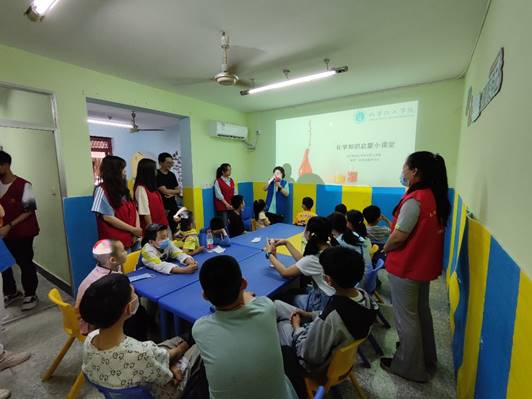 签约仪式结束后,公司砹锌志愿服务队在壹基金儿童服务站内开展了“热‘砹’生活、童‘锌’不泯”六一儿童节特别活动。志愿者们通过讲述科学原理、演示化学实验、指导实验操作以及互动游戏给小朋友们带去一堂趣味十足的科普宣传互动体验课。