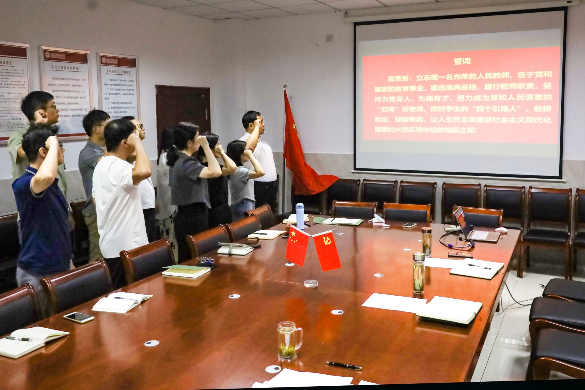 “我立志做一名光荣的人民教师,忠于党和国家的教育事业……” 公司副经理王钧伟带领新进教职工进行了入职宣誓,铿锵有力的誓言表明了坚持“为党育人,为国育才”的决心。会上,王钧伟还介绍了公司的基本情况,对青年教师的职业生涯规划和发展提出了具体的意见建议。